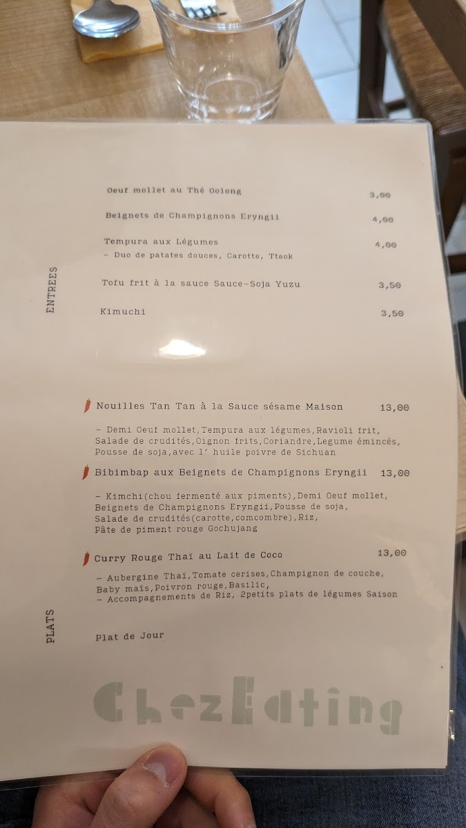The menu at Chez Eating offers a variety of Taiwanese and vegetarian dishes, reflecting traditional flavors adapted for a plant-based diet. The selection includes tofu-based appetizers and main courses, such as Tofu Frit and agedashi tofu, as well as Taiwanese Fried Chicken alternatives and classic dishes like 麻婆豆腐 定食 (Mapo Tofu Teishoku) and Tantan Nouilles Taiwannais (Taiwanese Tantan noodles). Visitors can also find rice dishes, for example Рис С Карри (rice with curry), and unique vegetarian interpretations of regional specialties including カツ 丼 (katsudon) and Rouleaux de Tofu (tofu rolls).